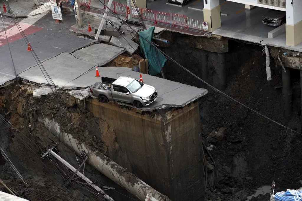 El gobernador de Bangkok, Chadchart, explicó en el sitio que el derrumbe no dejó personas lesionadas y que tres vehículos sufrieron daños en la zona, declarada de exclusión a partir de hoy, por lo que el tránsito ha sido suspendido y decenas de locales y hogares fueron evacuados.