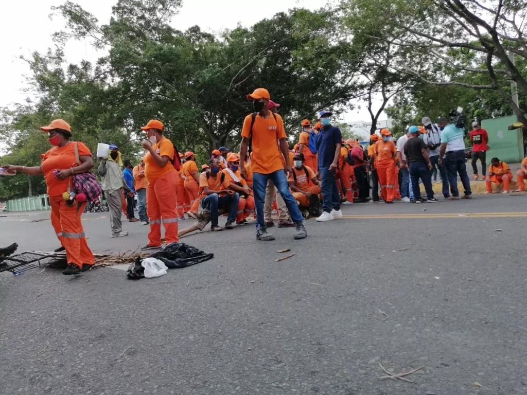 SANTO DOMINGO.-Decenas de colaboradores del ministerio de Obras Públicas han paralizado el tránsito en las inmediaciones de dicha institución en reclamo por el pago de sus servicios el cual dicen tiene un atraso de cuatro meses.