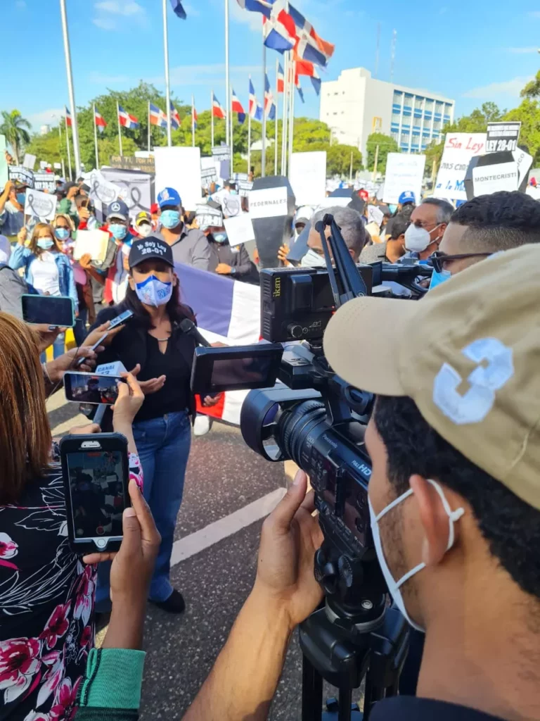 Una comisión de empresarios radicados en la frontera, acompañados de cientos de personas que residen en las siete provincias de la deprimida zona del país acudió hasta las afueras del Congreso Nacional, entonando consignas y llevando pancartas alusivas a su manifestación.