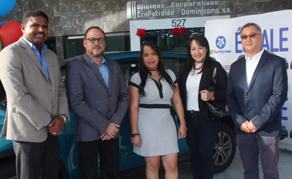 E smerlin Durán, residente en la ciudad de Constanza y quien resultó ganadora de una de las cuatro Jeepetas Suzuki Vitara correspondiente a la campaña “Échale y gana con Ecopetróleo y QuakerState”, recibió su premio de manos de ejecutivos de ambas empresas.