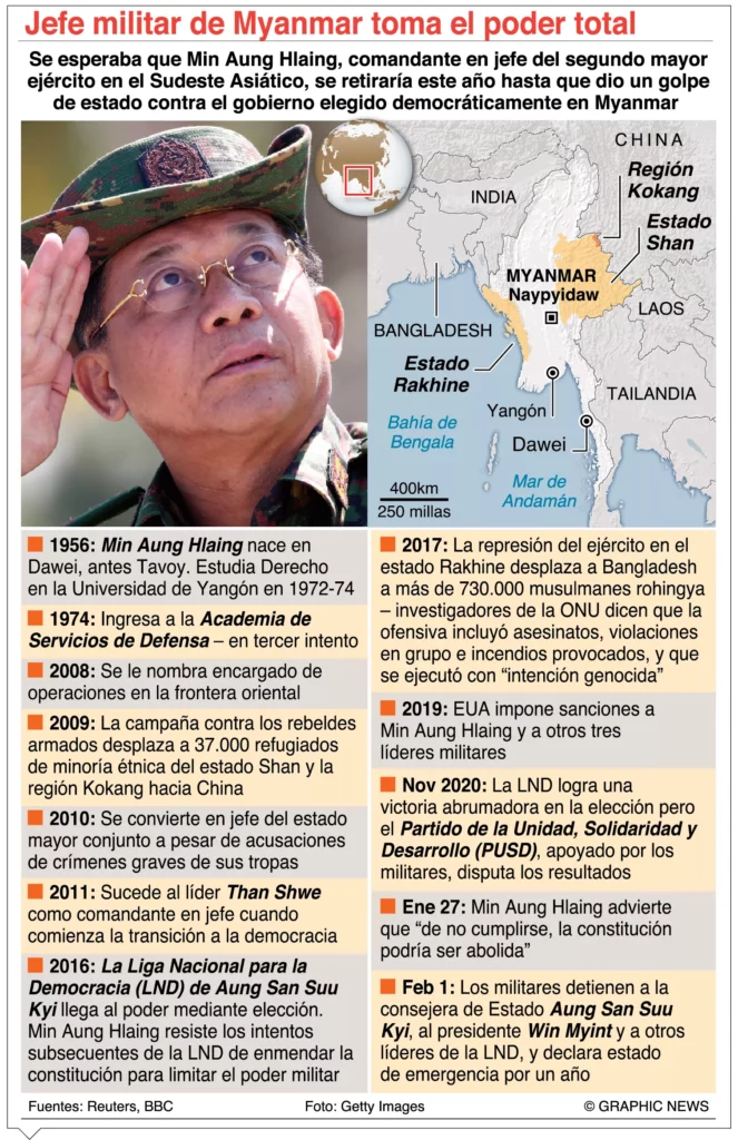 Naciones Unidas.-La Organización de las Naciones Unidas (ONU) reclamó ayer a las potencias internacionales una clara condena del golpe de Estado en Birmania y les pidió que rechacen el plan de los militares para celebrar unas nuevas elecciones.