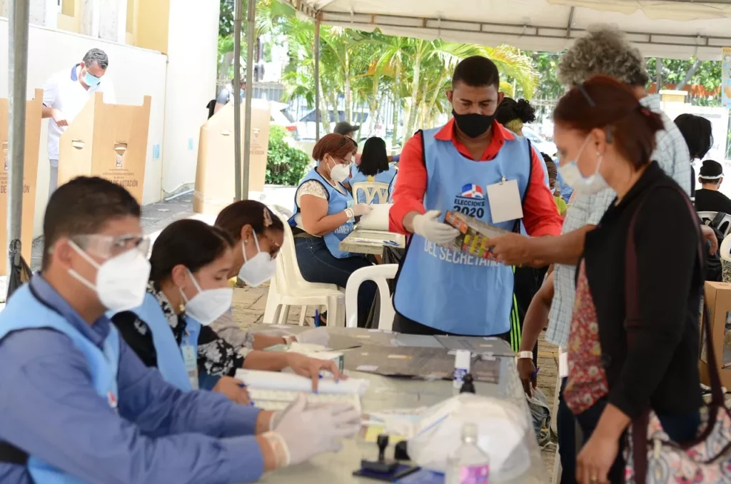Con escasas filas los facilitadores de la Junta Central Electoral facilitan la entrada a los votantes, a sus distintas mesas de votación.
