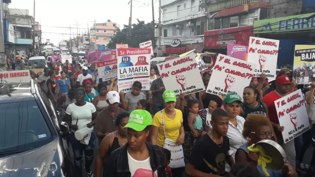La manifestación partió de la Avenida Nicolás de Ovando y recorrerá varias calles del referido sector capitalino, según anunció Socorro Monegro, dirigente del Movimiento Rebelde, quien reiteró que el paro se debe al alza en los precios de los combustibles y otras demandas.