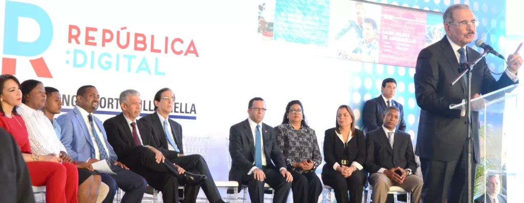 Santo Domingo.-Los aplausos de los estudiantes no se hicieron esperar ante la llegada del Presidente a la puesta en marcha del programa “República Digital”, que inició con la entrega de 940 equipos de última generación, y tendrá una inversión de 20 mil millones de pesos.