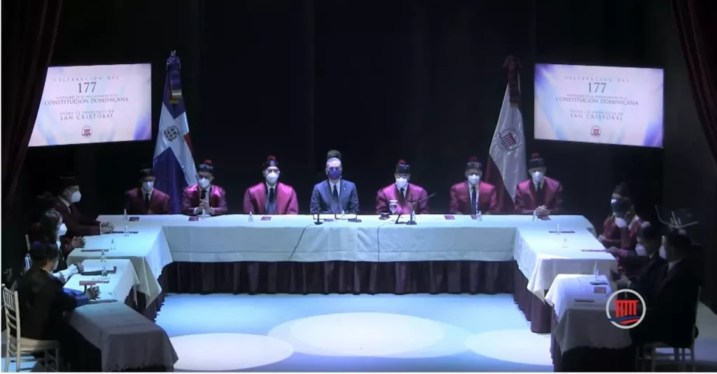 SANTO DOMINGO.- El presidente Luis Abinader encabeza en estos momentos a la Audiencia del Tribunal Constitucional, como parte de los actos conmemorativos del 177 aniversario de la Constitución de la República.