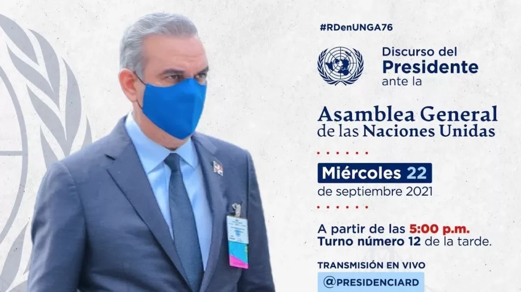 SANTO DOMINGO.- El presidente Luis Abinader se dirige en estos momentos ante los miembros de la Asamblea General de la Organización de las Naciones Unidas (ONU).
