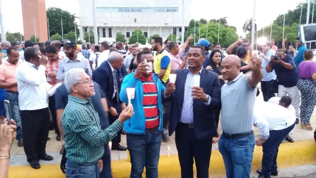 Los manifestantes, entre los que hay diputados de diferentes partidos y seguidores del expresidente Leonel Fernández como Bautista Rojas, Roberto Rosario, Johny Ventura , Franklin Rodríguez, entre otros.