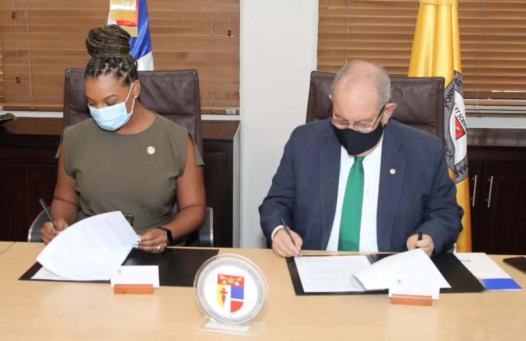Un primer acuerdo de colaboración interinstitucional fue firmado por Doralyn De Dios, presidenta de la DBA, con David Álvarez Martín, rector de la Pucmm; y otro similar tuvo efecto este jueves 16, con Odile Camilo Vincent, vicerrectora académica de Unibe, en las sedes de ambos centros docentes, con la asistencia de sus autoridades universitarias.