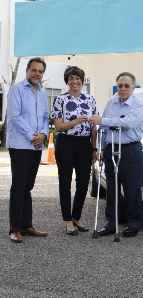 Celso Marranzini, presidente de la Junta Directiva Nacional de Rehabilitación y Ramón Ernesto Morales, presidente de Autozama, entregaron las llaves a Orlenis Margarita Castillo Rodríguez, agraciada.