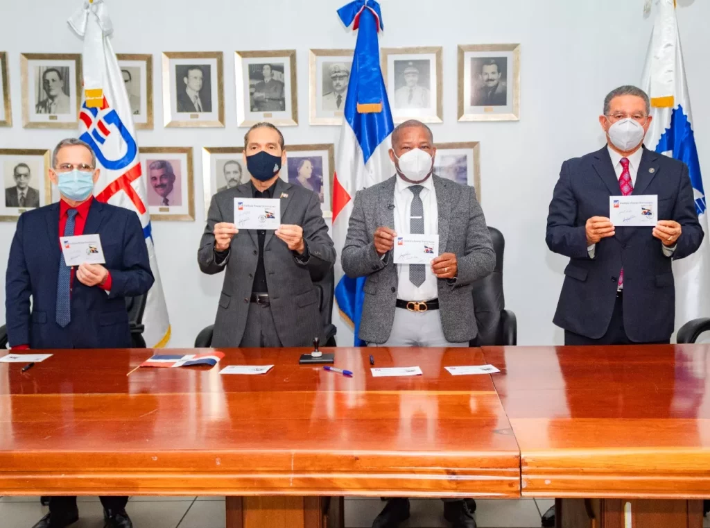 El evento estuvo encabezado por Adán Peguero, director general del Inposdom, Juan Pablo Uribe, presidente de la CPEP, Wilson Gómez, presidente del Instituto Duartiano y el presidente de la Sociedad Filatélica Dominicana, Alejandro Vignieri.