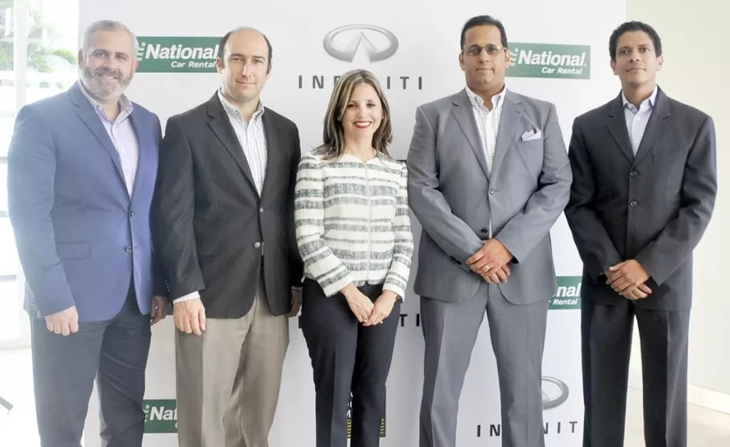 Santo Domingo.- Los ejecutivos de la empresa de alquiler de vehículos National Car Rental y los representantes de la marca Infiniti anunciaron una alianza en la que ofrecerán al público la oportunidad de alquilar el sedán mediano deportivo Q50.