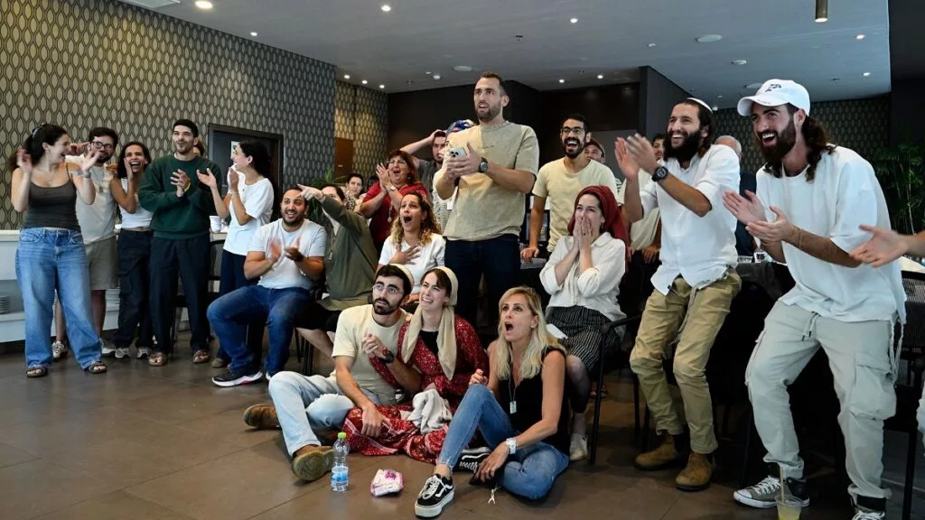 Amigos del joven amante de la música se levantaron de sus asientos, vitorearon, soplaron en shofares —cuernos tradicionales que anuncian buenas nuevas— y se abrazaron cuando vieron su imagen en una transmisión en vivo entre los siete rehenes que Hamás entregó en primer lugar al Comité Internacional de la Cruz Roja el lunes por la mañana. Otros 13 rehenes fueron liberados a mediodía, lo que llevó el número final de rehenes vivos a 20.