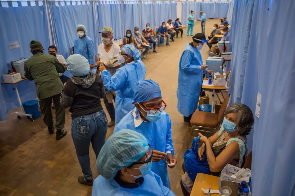 La situación se refleja en el centro de vacunación más grande del país, instalado en el hotel Alba Caracas, con aproximadamente 40 pequeños cubículos divididos por cortinas.