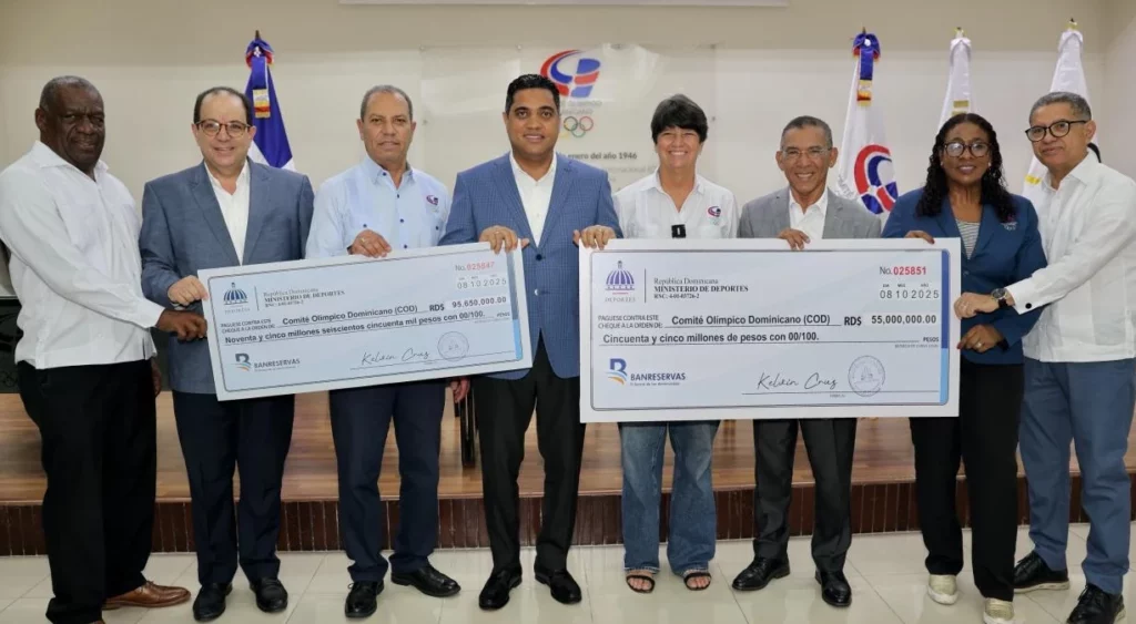 Santo Domingo.-El ministro de Deportes, Kelvin Cruz, entregó ayer un total de RD$150,650,000 al Comité Olímpico Dominicano (COD), destinados a fortalecer la preparación de las delegaciones que representarán al país en los Juegos Centroamericanos y del Caribe Santo Domingo 2026 y en los Juegos Bolivarianos Ayacucho-Lima 2025.