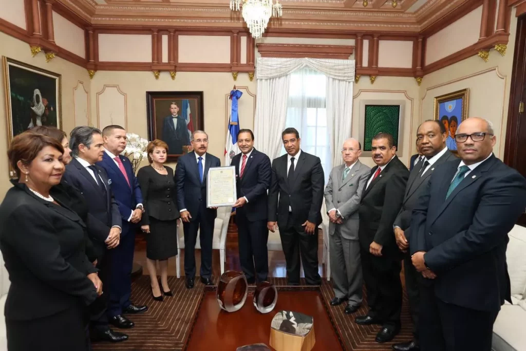 Santo Domingo.-El presidente Danilo Medina recibió en el Palacio Nacional la certificación aprobada por la Asamblea Nacional que lo acredita como Presidente electo de la República para el periodo 2016-2020.