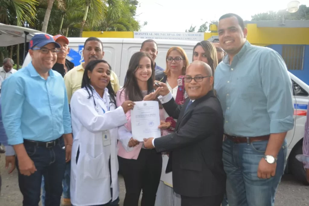 Tamboril, Santiago.- El gobierno entregó una ambulancia al Hospital Municipal doctor Ico Martínez, de Tamboril, el cual atiende alrededor de 85 mil pacientes al año y es muy utilizado en casos de emergencias llevados por el sistema 911 a esta provincia de Santiago.