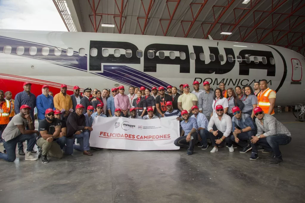 Los principales ejecutivos y el personal operacional de la aerolínea rindieron honor a los jugadores que dignamente llevarán a tierra extranjera la bandera nacional, antes de que el conjunto dominicano partiera en un vuelo chárter.