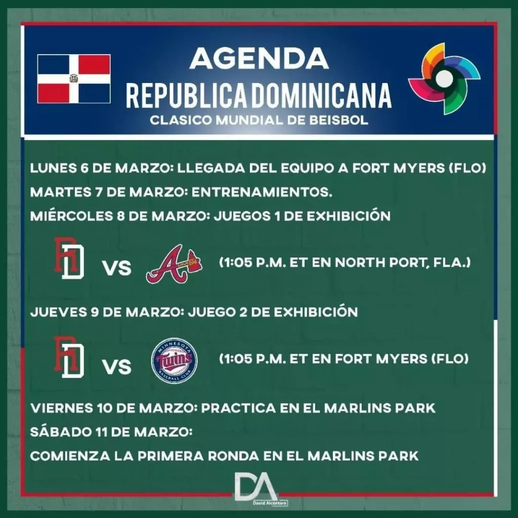 El equipo dominicano que representará al país en la quinta edición de Clásico Mundial empezará sus actividades desde el lunes de 06 de marzo, cuando se reunirá por primera vez en Fort Myers, Florida.