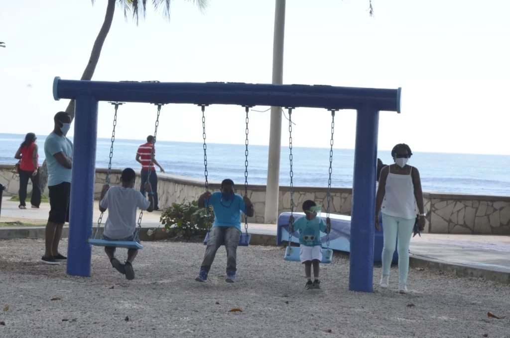 SANTO DOMINGO.- En los sectores de Villa Juana y el Ensanche de la Fe, así como en las inmediaciones de las plazas de Güibia y Juan Barón, fue notoria la escasa presencia de personas en las calles, pese a que algunas familias se divertían en los columpios o paseando en la acera frente al Mar Caribe en estos dos últimos lugares de recreación.