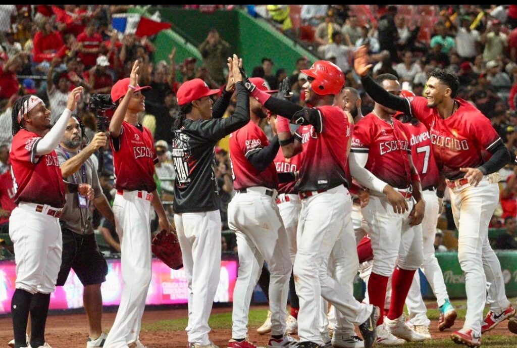 Brito se estafó la intermedia y, con corredores en segunda y tercera, Junior Lake bateó un rodado a la inicial que permitió a González entrar en carrera. Con otro roletazo, pero a la intermedia, Marmolejos se embasó gracias a que el intermedista Ángel Genao trató de poner out a Brito en la goma, que marcó la tercera de los escarlatas. Deury Carrasco entró a lanzar e imparables consecutivos de Jorge Mateo y Michael De la Cruz sumaron la cuarta rayita roja.