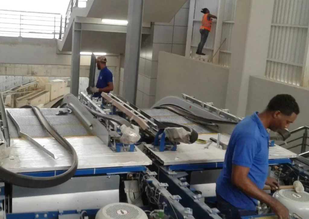 En la estación TI del teleférico, en Gualey, obreros y técnicos colocaban las últimas losas de pisos y revestimientos de paredes, como de las escaleras eléctricas.