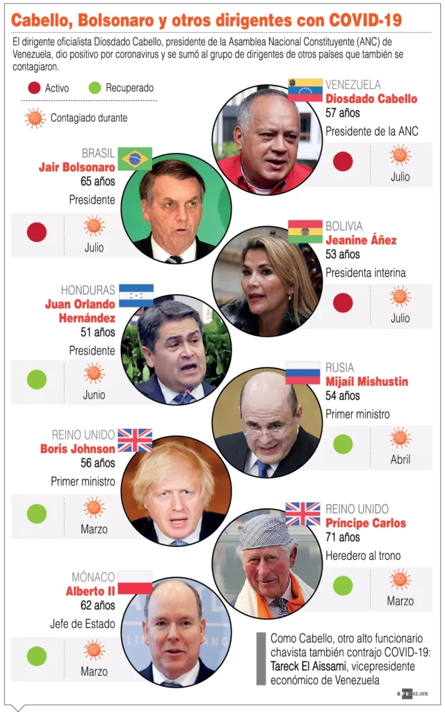 Cuatro de los 10 países del mundo con mayor número de casos (Perú, Chile, México y Brasil) son latinoamericanos, mientras que España ha descendido al noveno lugar y se registra un fuerte ascenso en Sudáfrica, que ocupa la undécima posición con más de 250,000 infecciones.