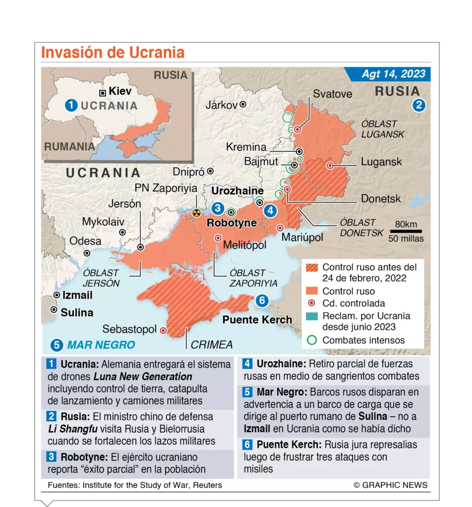 El Ejército ucraniano recuperó ayer terreno en el Donbás en su arduo avance hacia la costa, mientras Rusia castigó una jornada más el puerto de Odesa con drones y misiles en venganza por un reciente ataque contra el puente de Crimea.