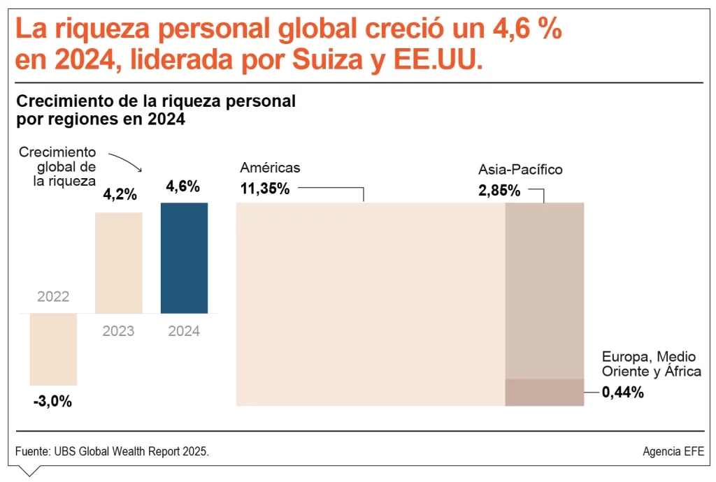 Este crecimiento desproporcionadamente rápido permitió que Estados Unidos representara casi el 40% de la población millonaria global, con cerca de 24 millones de personas residentes en su territorio con fortunas superiores al millón de dólares.