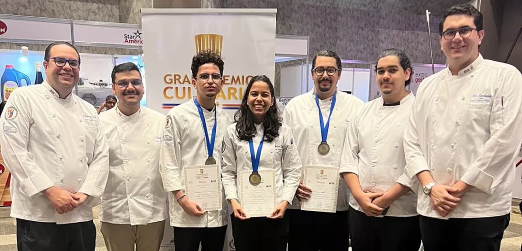 Estudiantes de la carrera de Administración Hotelera, concentración Alimentos y Bebidas de la Pontificia Universidad Católica Madre y Maestra (PUCMM), ganaron oro con sobresaliente participación en el Gran Premio Culinario 2022, realizada en la Expo Gastronómica Santo Domingo.