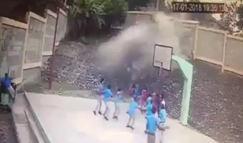 Aparentemente ningún estudiante fue herido por el vehículo y hasta el momento se desconocen las causas del accidente dónde se ve a un hombre que se presume estaba en el camion, saliendo de manera rápida y a otro que parece golpeado.