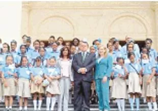 Cuarenta niñas y niños meritorios, sus maestras y la directora se dieron cita al acto. En la foto: los niños y directivos del centro educativo.