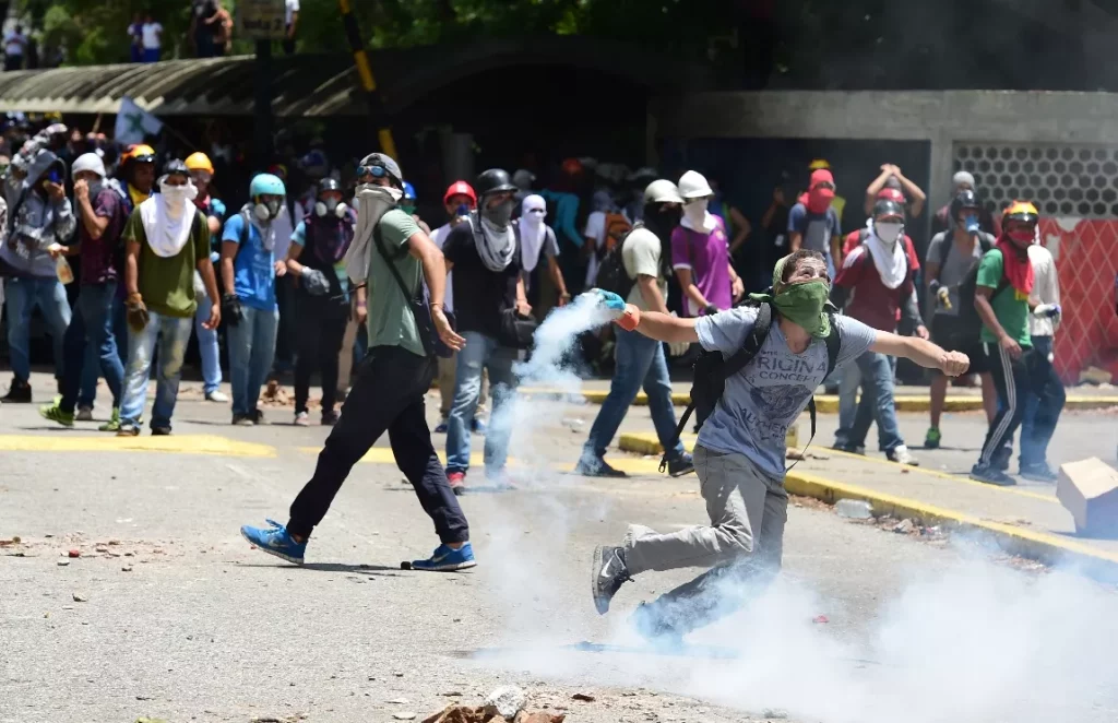 Los choques iniciaron cuando los agentes antimotines impidieron una marcha de cientos de alumnos de la UCV dispersando gases, en tanto varios de éstos, algunos encapuchados, respondieron con piedras y cócteles molotov, según un equipo de la AFP en el lugar.