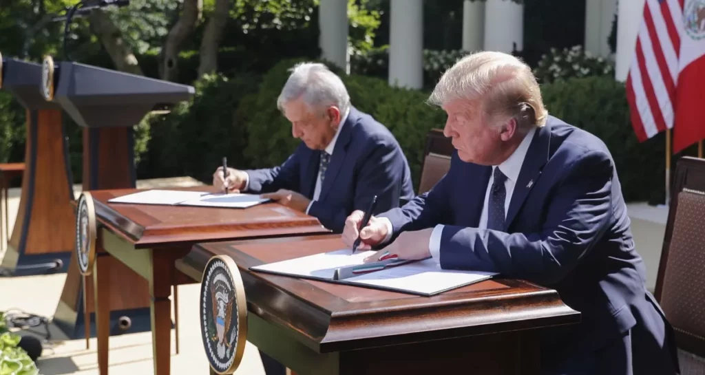 En una declaración conjunta que firmaron después de su encuentro en la Casa Blanca, los dos mandatarios celebraron la entrada en vigor el pasado día 1 del T-MEC, renegociado entre Estados Unidos, México y Canadá para sustituir el antiguo Tratado de Libre Comercio de América del Norte (TLCAN), que databa de 1994.