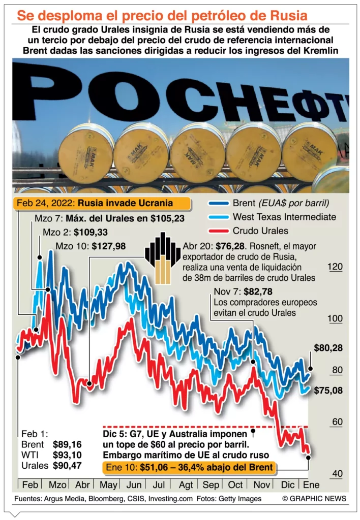 El tope de precio de 60 dólares por barril es impuesto al prohibir a las aseguradoras —en su mayoría ubicadas en Europa o en Gran Bretaña— transportar el crudo ruso vendido por encima del tope.