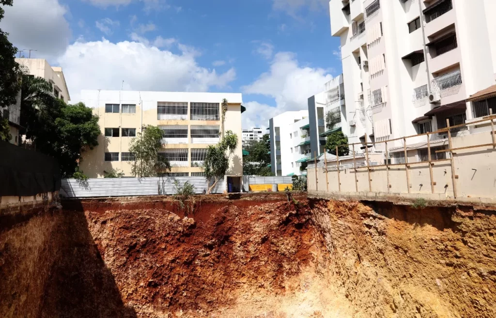 SANTO DOMINGO.-Excavaciones para la construcción de torres de apartamentos con parqueos soterrados representan peligro, especialmente para sus vecinos y propiedades adyacentes en distintos puntos de la Capital, ante los disturbios tropicales y la eventualidad de un sismo.