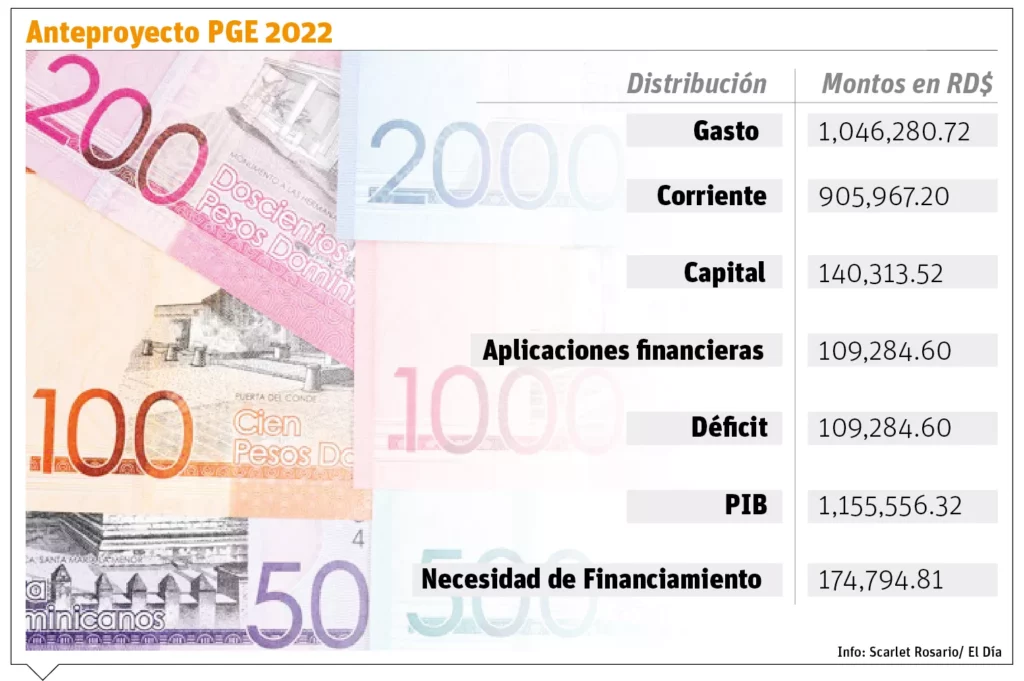Explicó que como se está hablando de un déficit de un 3 % del Producto Interno Bruto (PIB) y se proyecta un PIB de 5,837 millones de pesos, el déficit ronda alrededor de 275 mil millones de pesos.
