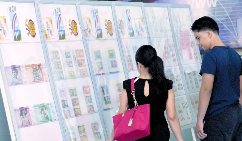 La exposición tiene como variación la muestra simultánea de las seis emisiones de monedas y papel moneda que ha tenido el país desde su fundación.