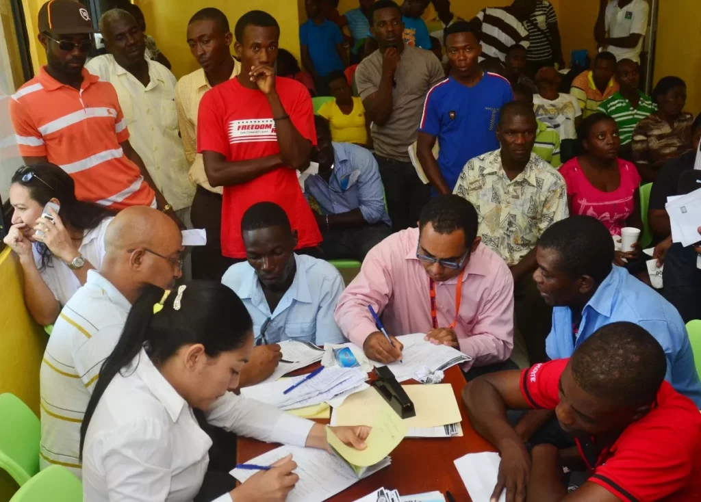 La Romana.-Al entrar a la Gobernación de La Romana es evidente el flujo de nacionales extranjeros haciendo filas o buscando algún tipo de información para acogerse al Plan Nacional de Regularización puesto en marcha por el Gobierno.