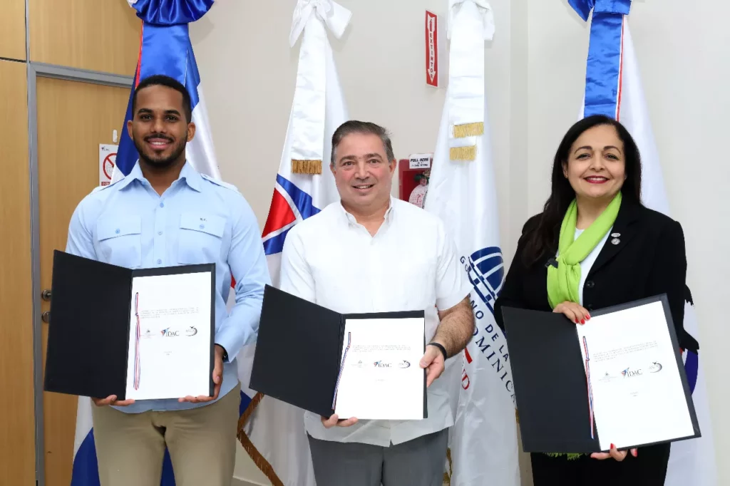 El convenio fue suscrito por Rafael Félix García, ministro de la Juventud; Héctor Porcella, director del IDAC; y Clara Fernández, rectora de la ASCA, durante una ceremonia celebrada en las instalaciones de la academia.