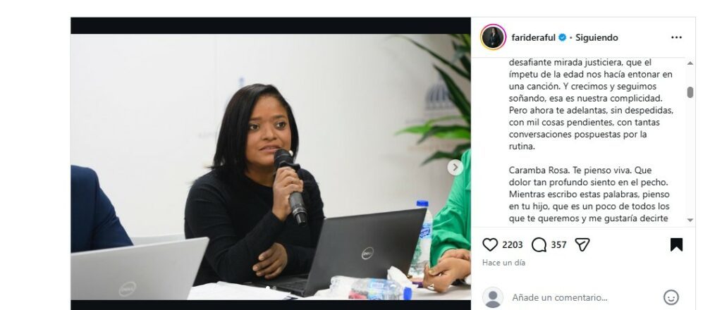 “Esta manera abrupta de irte me ha dejado una profunda herida en el alma”, expresó Raful, al recordar la amistad que las unió por años y el compromiso con el que Aybar Brito asumió su rol como directora de Cooperación en un ministerio que según señaló demandaba más de lo imaginado.