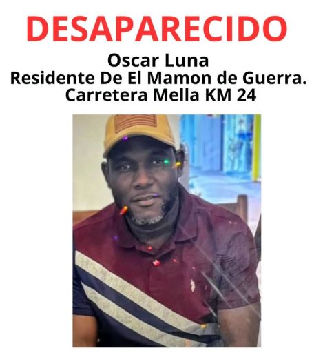 Los parientes de Oscar Luna recalcaron que, si conocen el paradero de extraviado, por favor comunicarse a los teléfonos (829) 365-5952/ 829-9623737 y 809-268-9784 con la señora Digna Pimentel o al (829) 393-6551 con la señora Virtudes Bidó Luna.