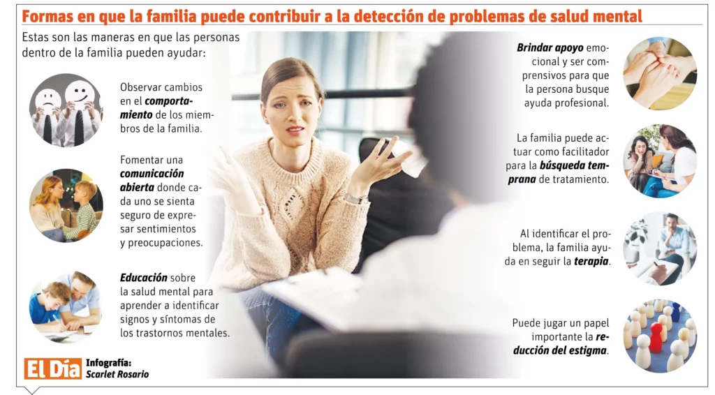Santo Domingo.-La familia juega un papel fundamental en la detección de problemas de salud mental, ya que es la que comparte cada día y puede notar algún cambio en el comportamiento de uno de sus miembros, aún cuando el afectado no se da cuenta.