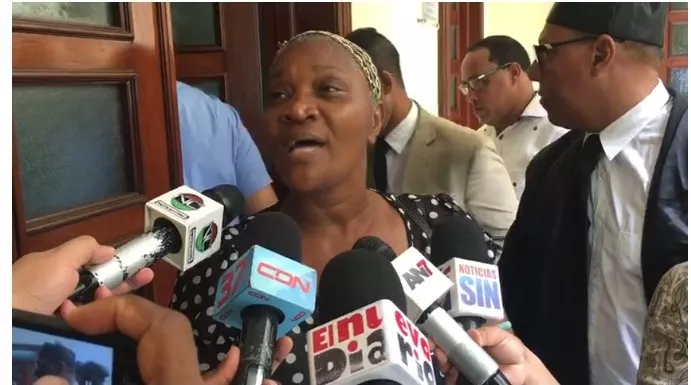 Enriqueta Figueroa de Paula habló en el Palacio de Justicia de Ciudad Nueva donde se espera le sea conocida medida de coerción al sargento municipal Ángel Ogando Ogando, en la Oficina de Atención Permanente del Distrito Nacional.