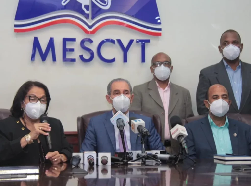 El titular de la MESCyT, Franklin García Fermín, la rectora Emma Polanco y dirigentes de la Federación de Asociaciones de Profesores de la UASD socilizaron el pliego de demanda del gremio para arribar algún acuerdo, sin lograr rponer fin al conflicto.