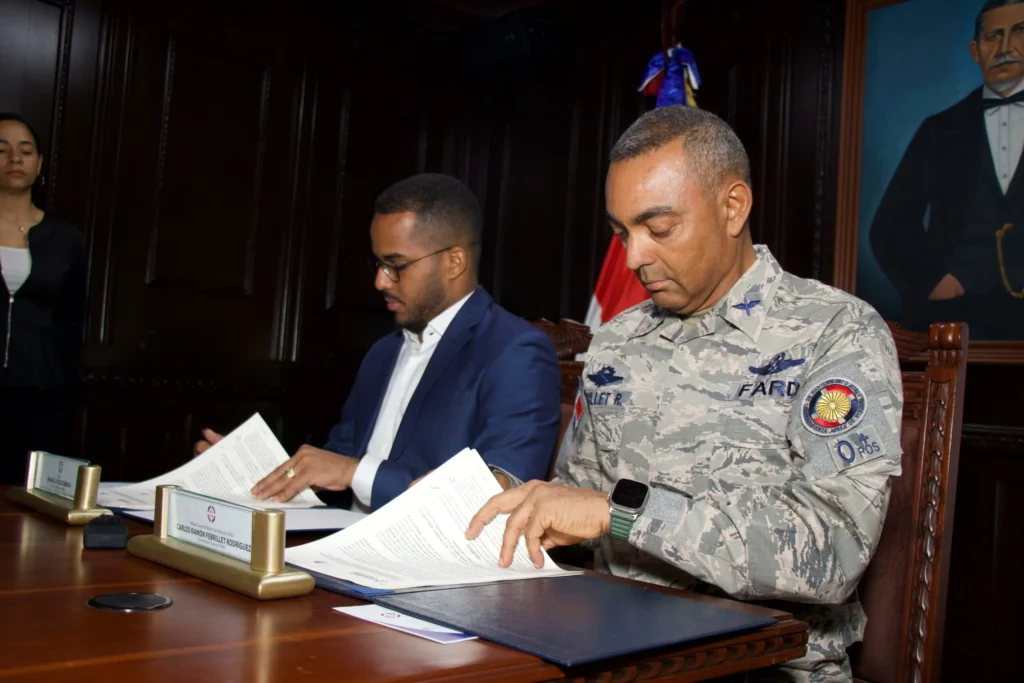 La alianza estratégica fue sellada con la firma del Mayor General Técnico de Aviación, Carlos R. Febrillet Rodríguez, Comandante General de la FARD y el Ministro de la Juventud, Rafael Féliz García.