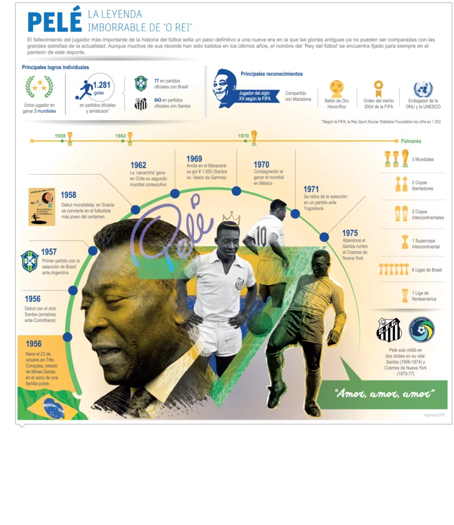 Antes de ser futbolista, cuando aún era un niño, trabajó de limpiabotas para llevar algo de dinero a casa. Jefes de Estado e importantes organismos internacionales, lamentan la partida del gran jugador que nació en una humilde comunidad brasileña..