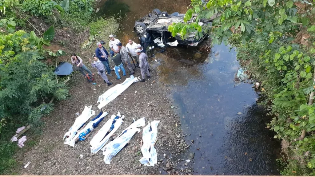 SANTO DOMINGO.-El fiscal de Monte Plata dijo este mediodía que eran delincuentes los seis jóvenes que murieron en un accidente de tránsito al caer desde un puente a un río en el vehículo en que viajaban a alta velocidad por la carretera El Cacique-Monte Plata.