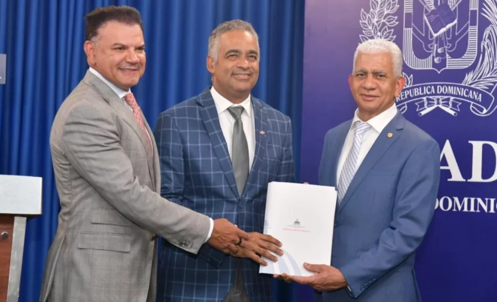 La entrega se realizó durante una visita al presidente del Senado, Ricardo De Los Santos, realizada por el minsitro de la Presidencia, Joel Santos, y Andrés Vander Horst, vicepresidente ejecutivo de Fiduciaria Reservas.