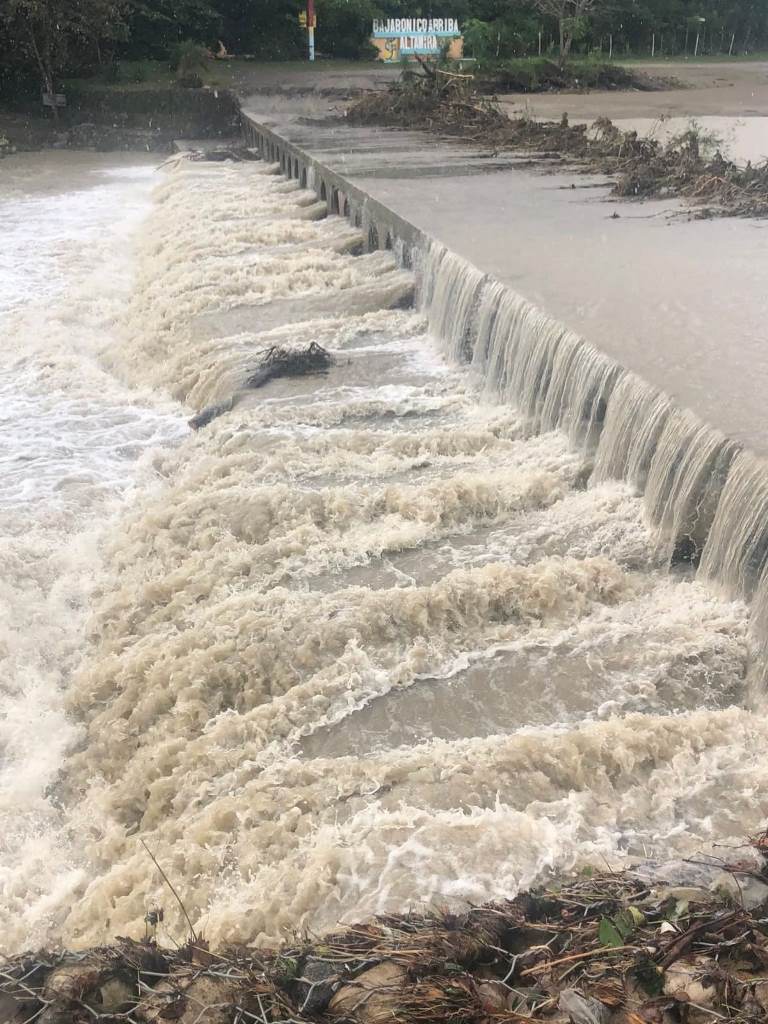 Este caudaloso río tronchó el paso terrestre hacia las comunidades Angostura, La Piragua y Los Félix de Bajabonico Arriba en el municipio de Imbert, también causó dificultades en los sectores La Grúa y La Marina, igual que el río Obispo en Barrabás, La Yagüita y El Puerto de Llanos de Pérez.