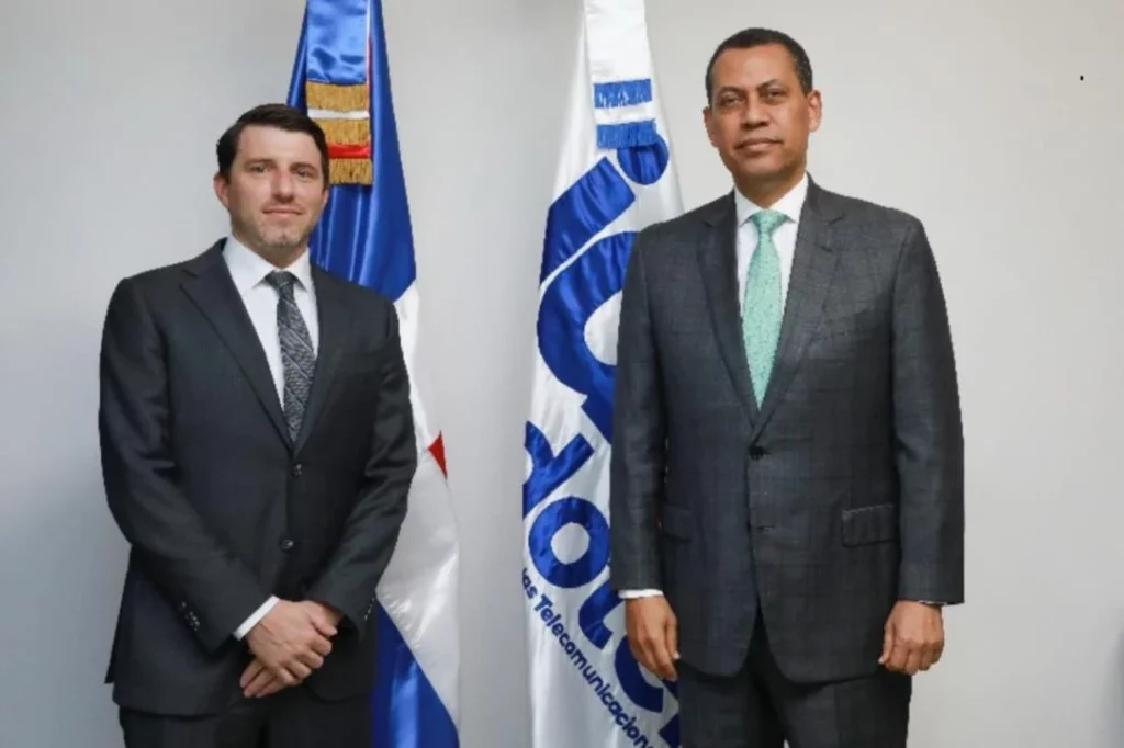 El diplomático estadunidense y el funcionario dominicano conservaron sobre el desarrollo de las telecomunicaciones en el país, ciberseguridad y la cooperación entre las dos naciones.